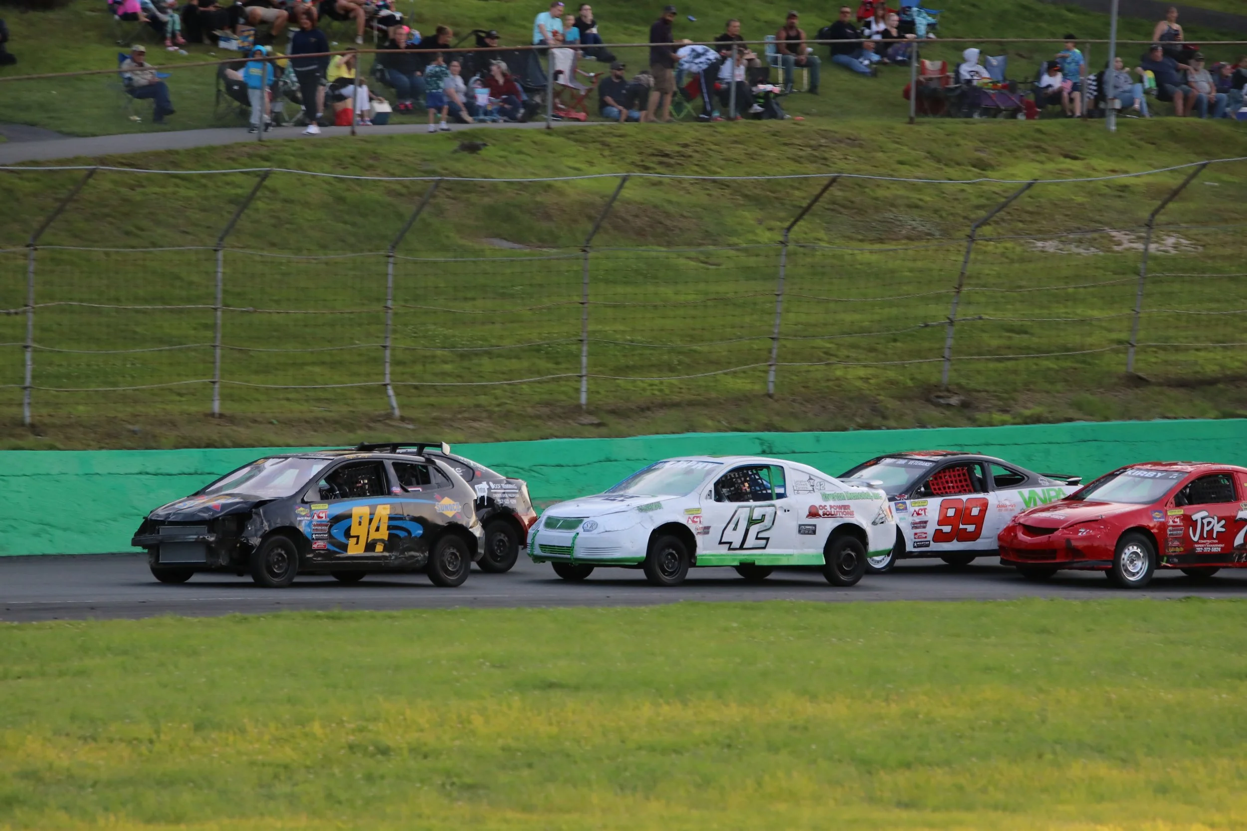 Although East Montpelier’s Cam Powers was able to resurrect a top-10 finish after a catastrophic lap three crash in Sunday’s annual Street Stock Special, Northfield’s James Dopp overtook the point lead with his third-place run. The battle continues to determine the champion in New England’s most competitive four-cylinder division but a new challenge also began on Sunday. Defending rk Miles Street Stock champion Dean Switser Jr. heads the Triple Crown standings, with events on August 6th, 10th and 12th counting toward the Crown. Along with the $500 extra-money win on Super Saturday, August 12th, the Triple Crown champion will pocket $300, second in points will earn $200 and third-place will take $100 cash bonuses.