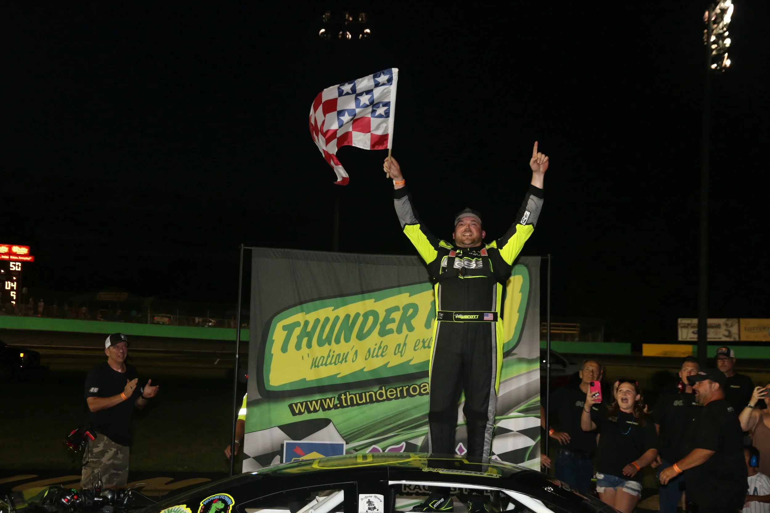 /Barre, VT — Every driver remembers their first win at Thunder Road and 2024 brought several drivers that first memory for many on several special occasions this summer. The Burnett Scrap Metals Road Warriors once again led the first time winners category in 2024, beginning on Community Bank opening day as Kendall Zeno started the trend on a balmy Saturday night in May!