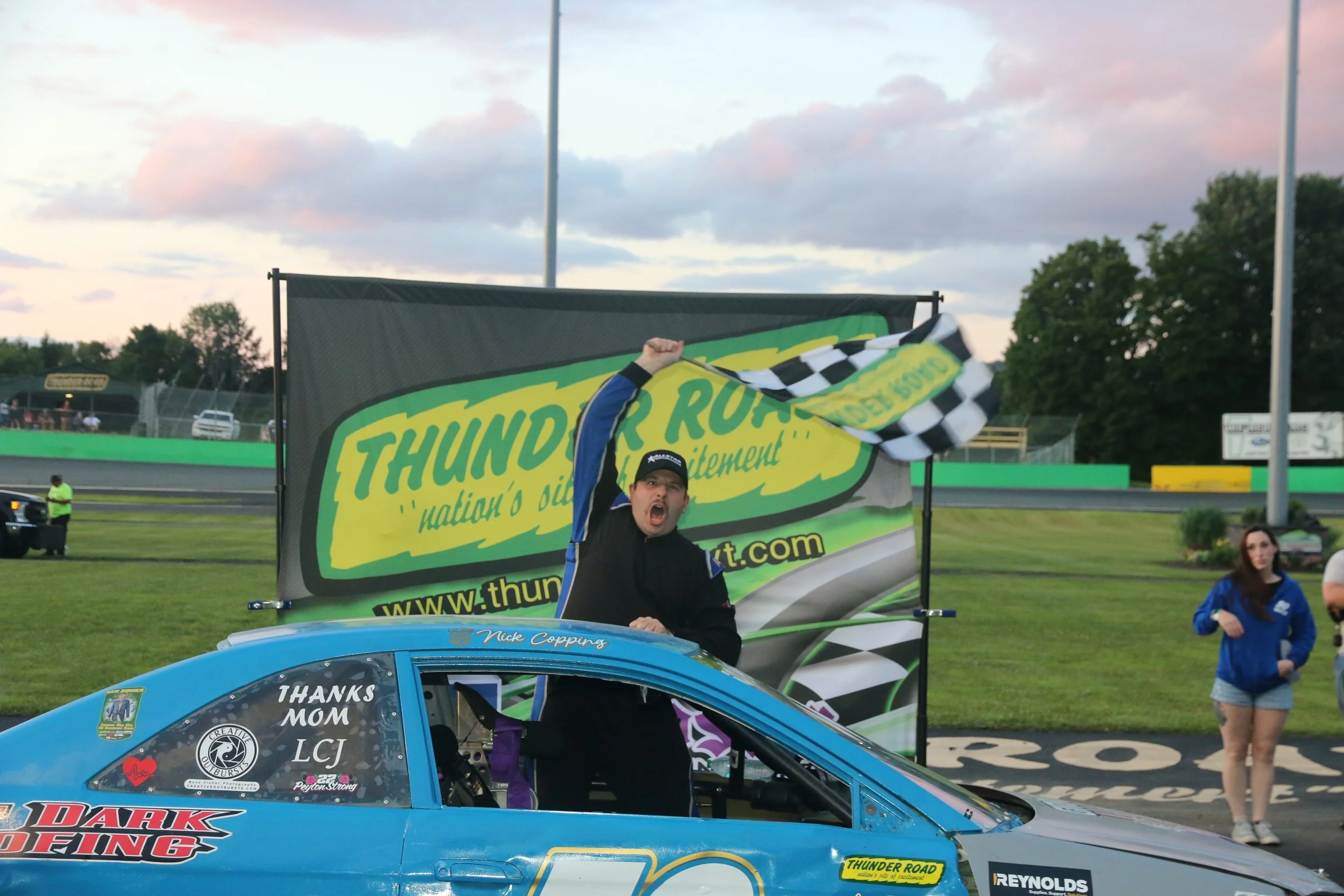 The 1st annual Superstars of Thunder Road Double Feature Night was a torrid affair for the first time winners with longtime Road Warrior pilot Nick Copping finally grabbing the brass ring in Feature #1 to claim his first win at The Road! In the second round of features, Barre’s Chris LaForest bettered his first feature finish by just one spot to take his first Flying Tiger win while Marshfield’s Kylee Potter stood tall as the next generation of victorious Potters at the Nation’s Site of Excitement in the rk Miles Street Stocks! Another longtime runner Dan Garrett, Jr. finally took his first Road Warrior win to round out July on Times Argus Midseason Championship night!