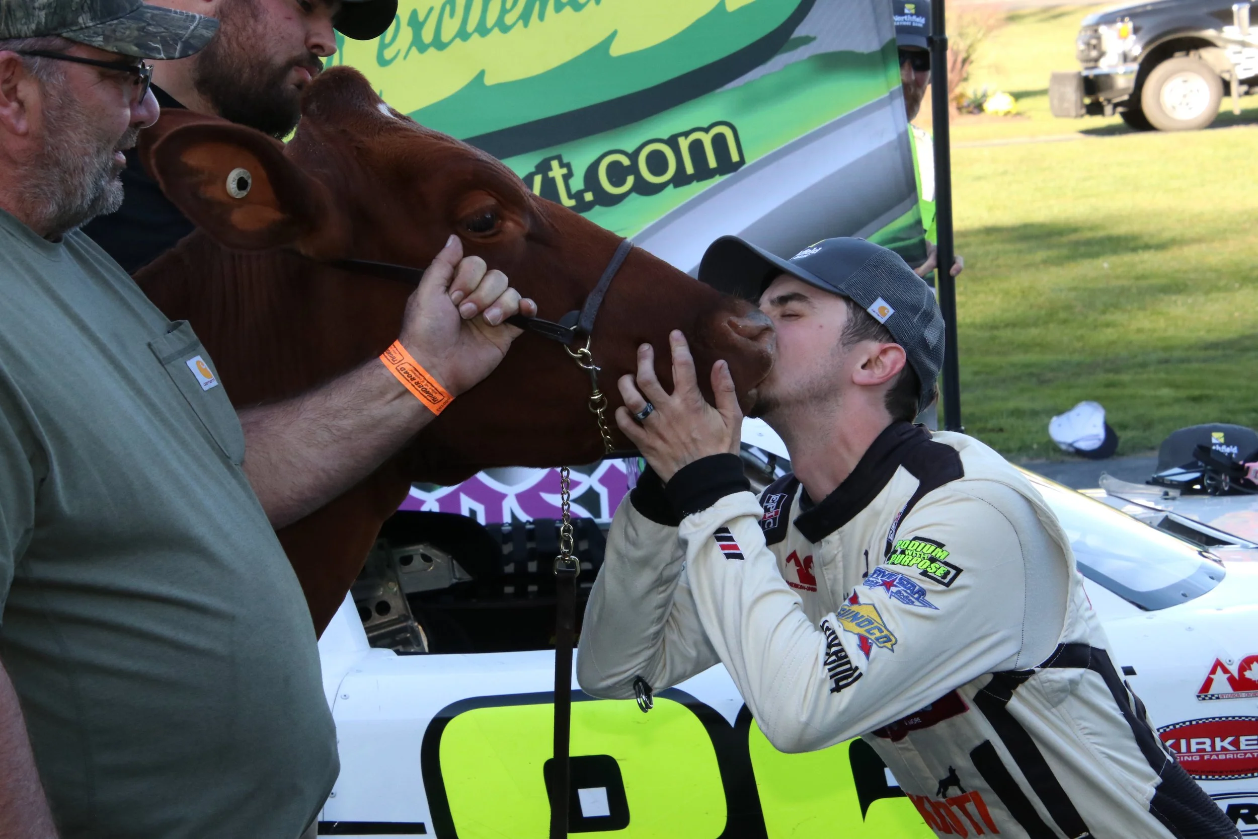 Unfortunately for the Massachusetts invader, oil leaking from an engine gasket sat Gluchacki on the sidelines for the final segment and Gravel capitalized with an eighteen-point total to take the overall in his first Milk Bowl triumph. Not to be outdone, Logan Power’s once again captured the Flying Tiger Mini Milk Bowl in the iconic #5A livery made famous the world over by Quebec’s greatest driver, Jean-Paul Cabana. Cabana, the then 89-year-old (now 90 as of November 21) former Milk Bowl champion marched his way through the stands to join Powers in victory lane for one of the most memorable moments of the 2024 season.