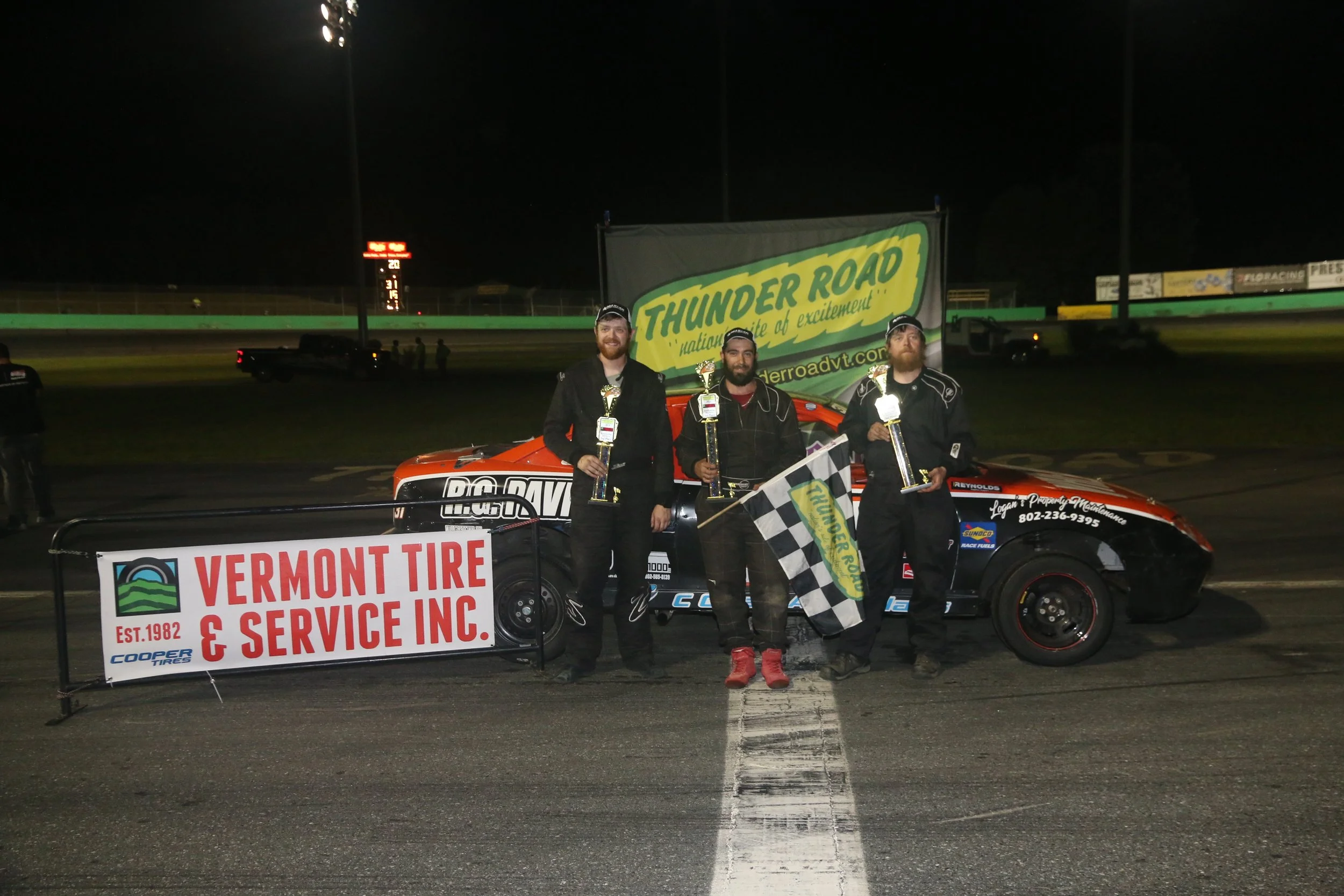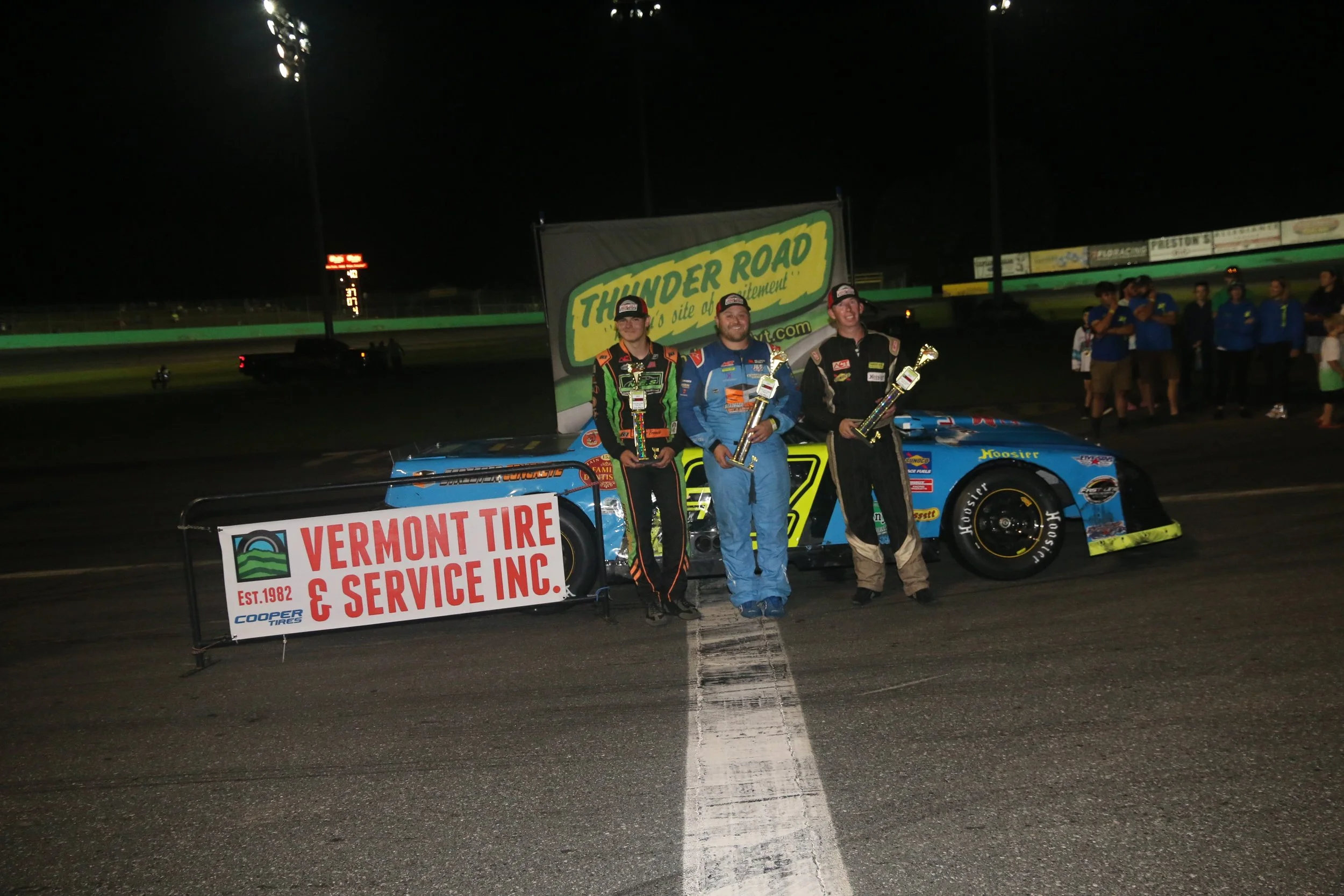 The Flying Tigers returned later in the program with Mike Billado and Sam Caron at the helm of the 40-lap Vermont Tire & Service trophy dash. Digging deep for the FloRacing Double Purse, and to recoup his point losses in the extra-distance opener, Sam Caron charged into the lead around Billado on lap 4 with Kyle Streeter hot-to-trot behind him. A blown-out wheel for Cameron Ouellette brought the first caution on lap 12 with Kyle Streeter besting Caron on the restart green. With the race continuing straight through to the double checkered flags, Kyle Streeter took down his third win of the season followed by Sam Caron and Cooper French on the podium.