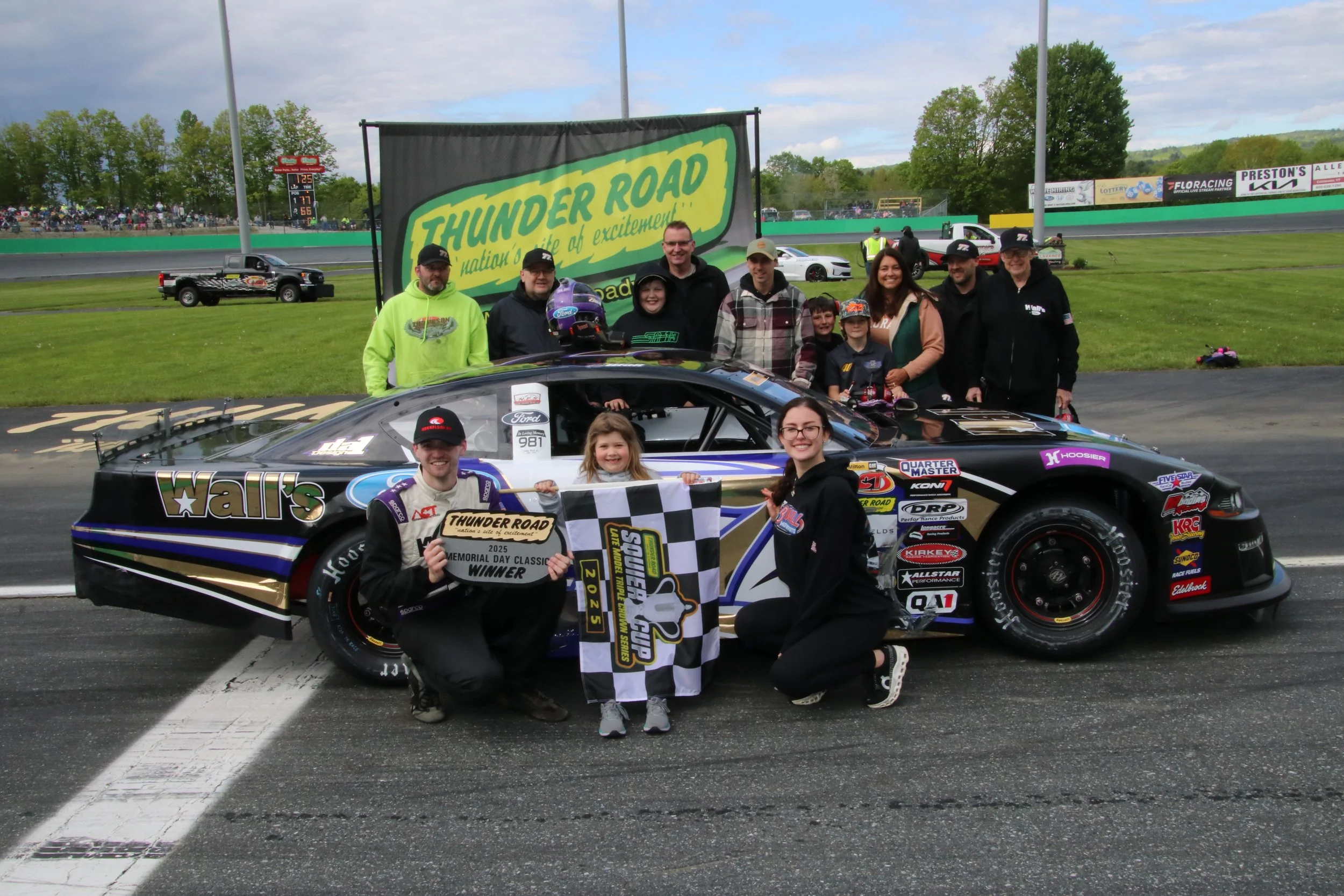 Barre, VT – While a heavy fog and mist started off the day, Mother Nature finally changed her way for Northern New England race fans on Sunday afternoon at the Nation’s Site of Excitement. Thirty-three Maplefields/Irving Late Models filed into the Thunder Road pit area with officials opting to start all cars for the 62nd Mekkelsen RV Memorial Day Classic.